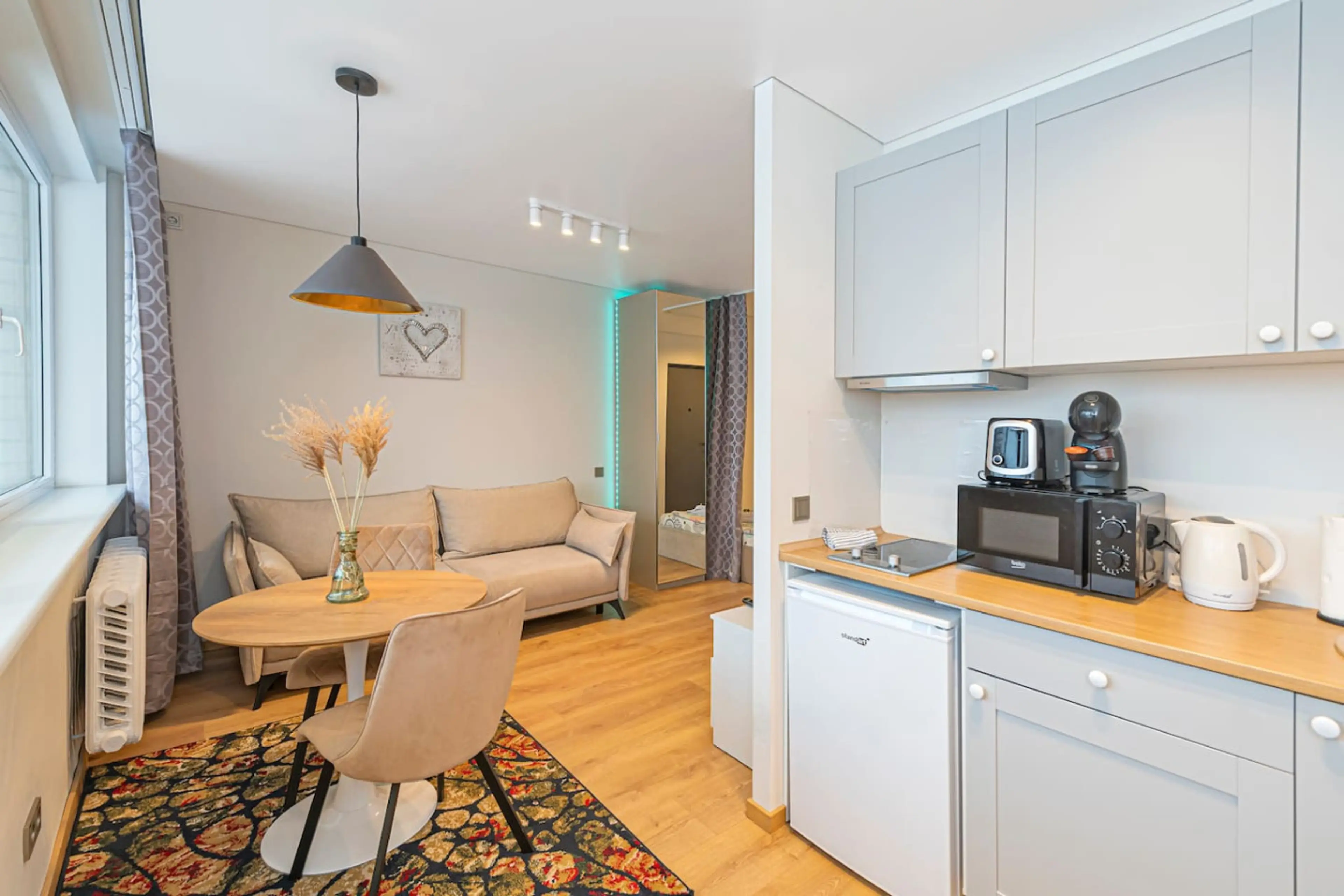 Welcome to this beautifully decorated 27 sq. m. studio apartment located on the third floor. Thoughtfully designed with great attention, the space offers a warm and modern atmosphere perfect for both short and longer stays. The apartment features a comfortable large double bed and a sofa-bed, easil...